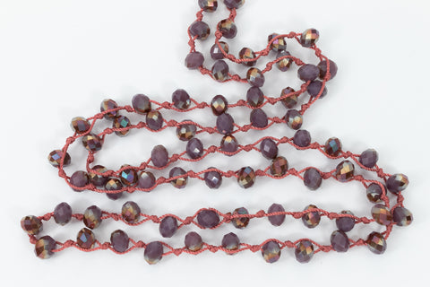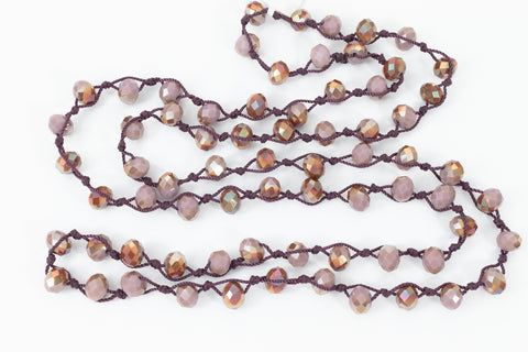 36" Mauve Khaki AB 6mm x 8mm Faceted Rondelle Knotted Necklace