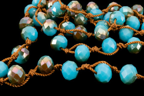 36" Sky Blue Khaki AB 6mm x 8mm Faceted Rondelle Knotted Necklace