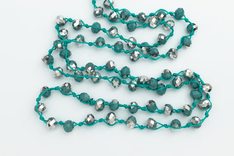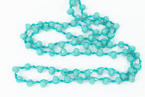 36" Turquoise Green 6mm x 8mm Faceted Rondelle Knotted Necklace