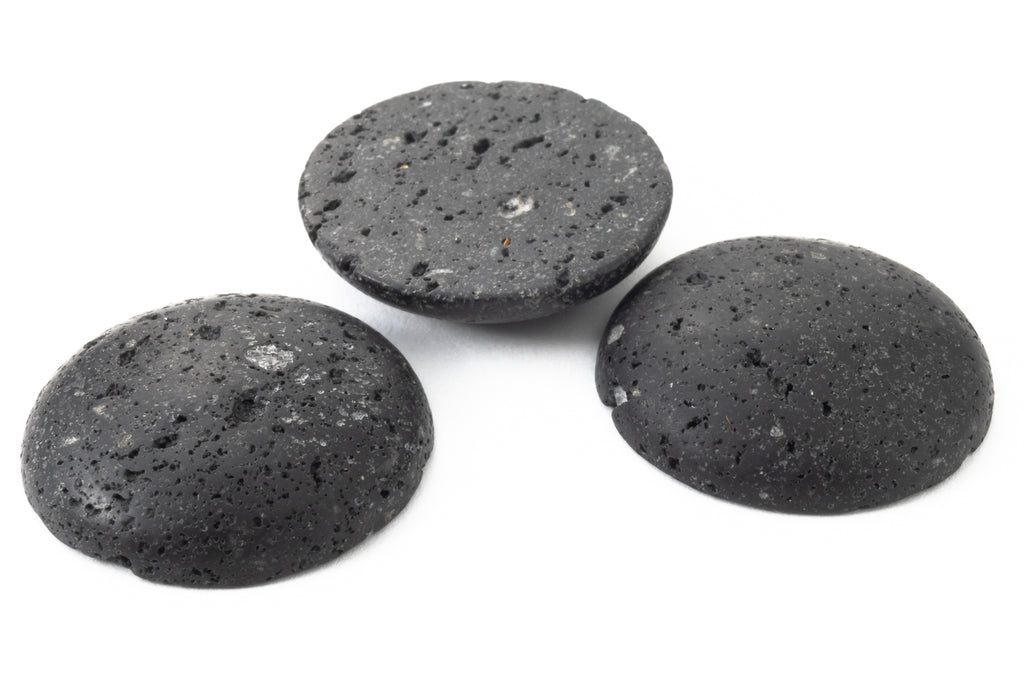 25mm polished Lava Rock round low dome cabochon.