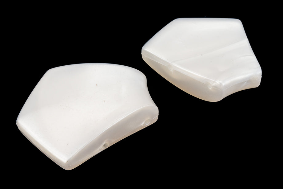 41mm x 39mm elongated pentagon shape in smooth opal white.