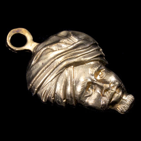 15mm x 20mm raw brass three dimensional face of a man with wrapped turban.