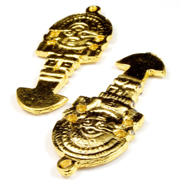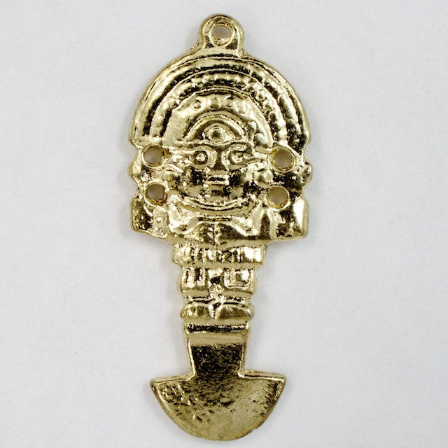 16mm x 42mm heavyweight pewter pre-Columbian style charm with gold plating.