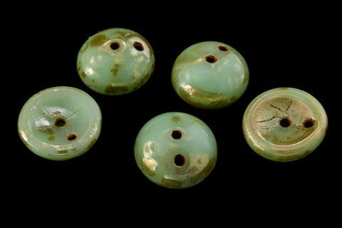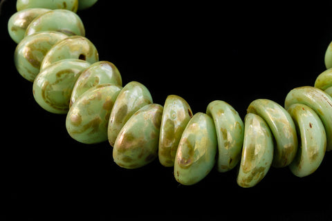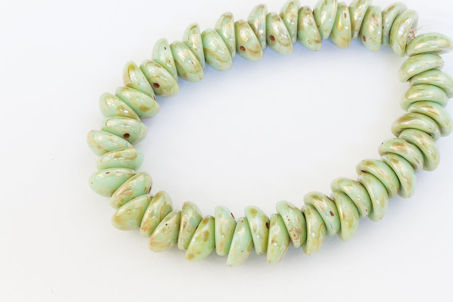 4mm x 8mm opaque mint green concave "Piggy" bead with picasso finish and 2 holes.