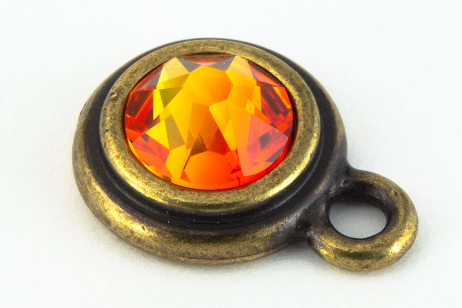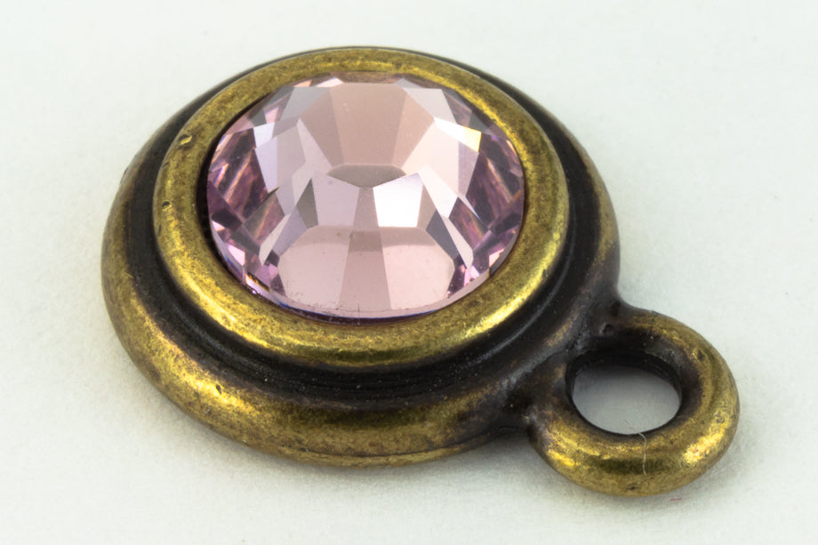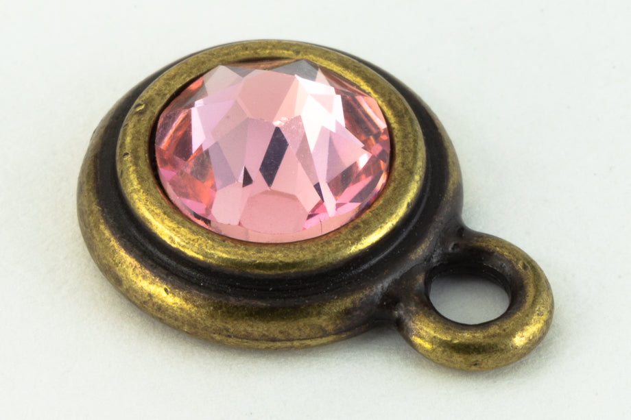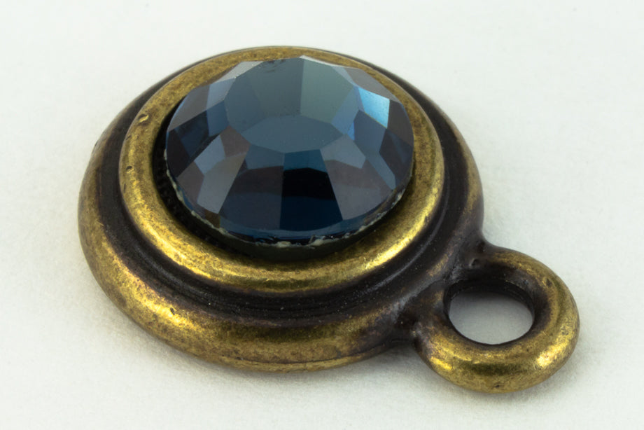 16mm x 12mm antique brass round ear post with bezel for 34ss flat back rhinestone.