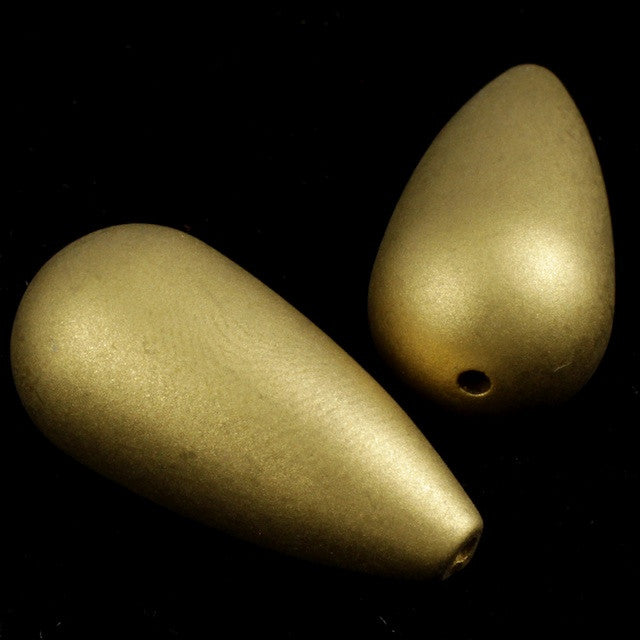 12mm x 25mm matte gold teardrop bead with vertical hole.