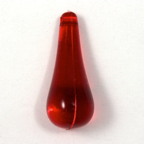 11mm x 27mm transparent light red drop shape bead with hole through top.