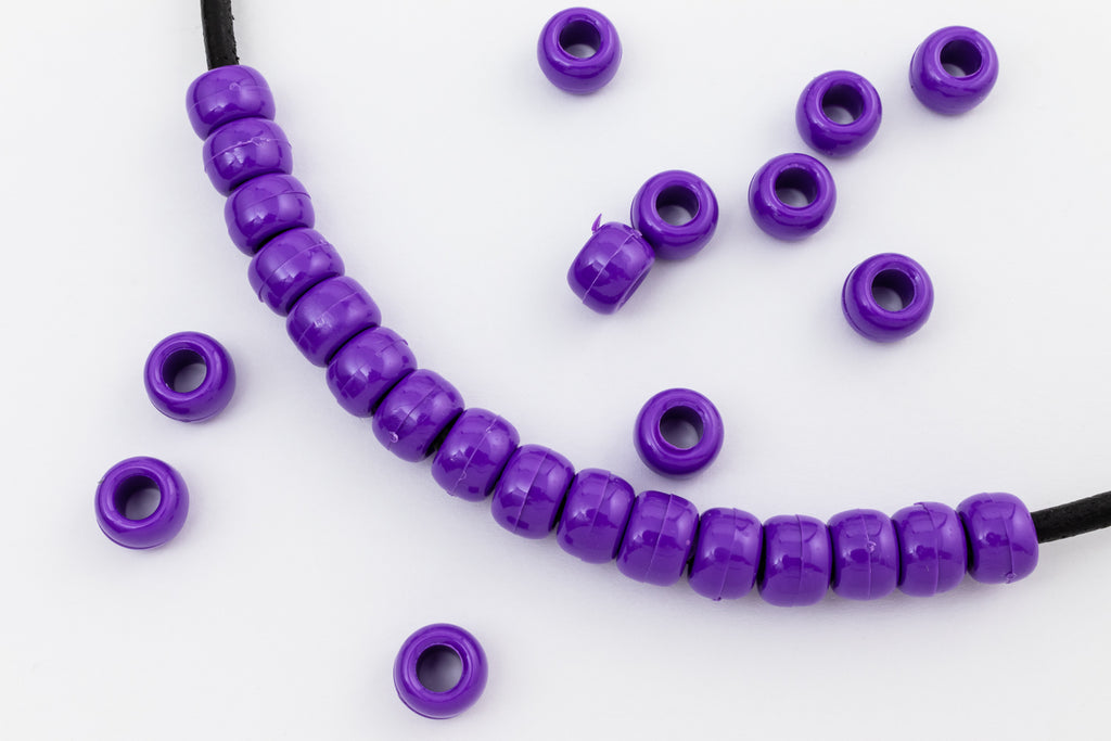 Opaque purple 6mm x 9mm plastic Pony style craft bead.