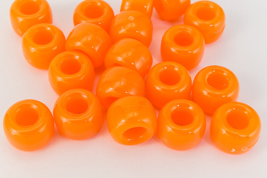 Opaque orange 6mm x 9mm plastic Pony style craft bead.