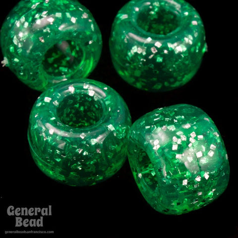 9mm Green Glitter Pony Plastic Craft Bead (50 Pcs) #4252