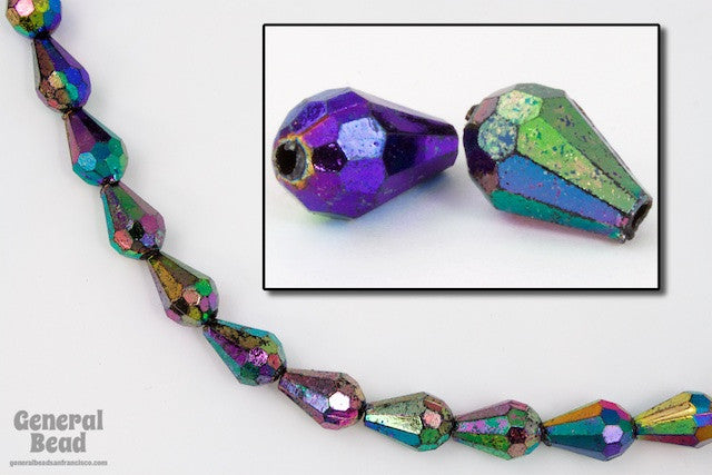 6mm x 10mm iridescent black faceted teardrop with vertical hole.