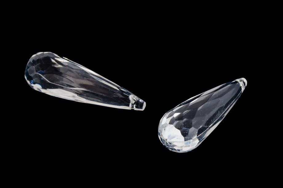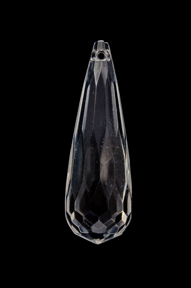 32mm x 10mm transparent clear faceted teardrop with hole at top.