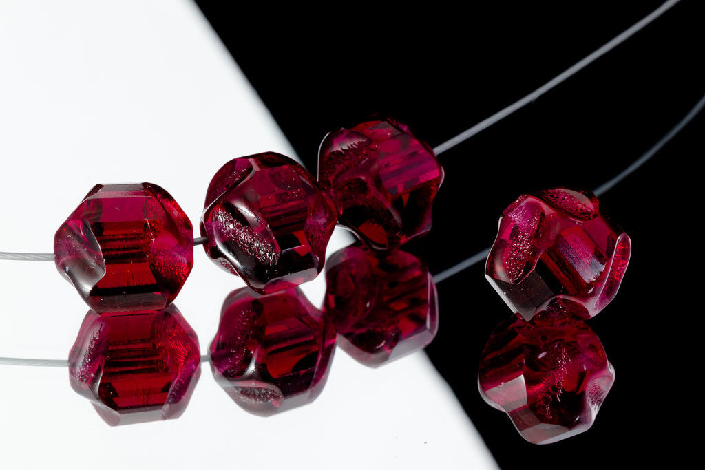 10mm pressed glass cathedral bead in fuchsia.