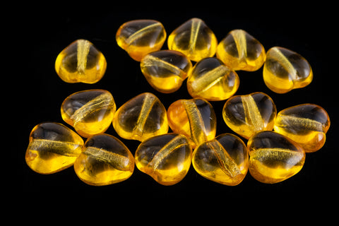 6mm transparent light topaz heart with vertical hole.Current manufacture from the Czech Republic.25 pieces per package.