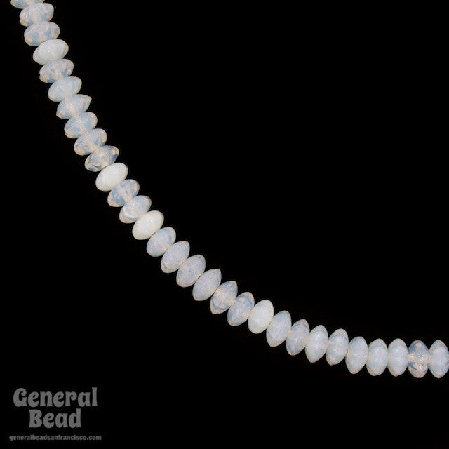 6mm flower shape rondelle in opalescent white glass.