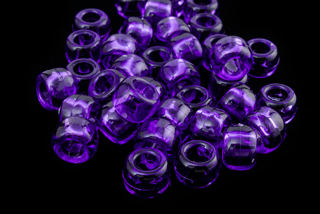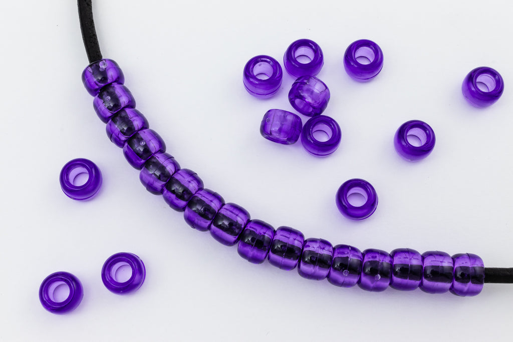 Transparent amethyst 6mm x 9mm plastic Pony style craft bead.