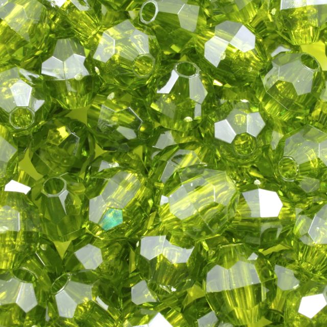 Transparent olive faceted round bead.