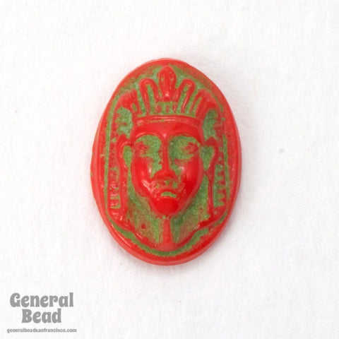 11mm x 16mm red with green Pharaoh head in the Egyptian revival style.