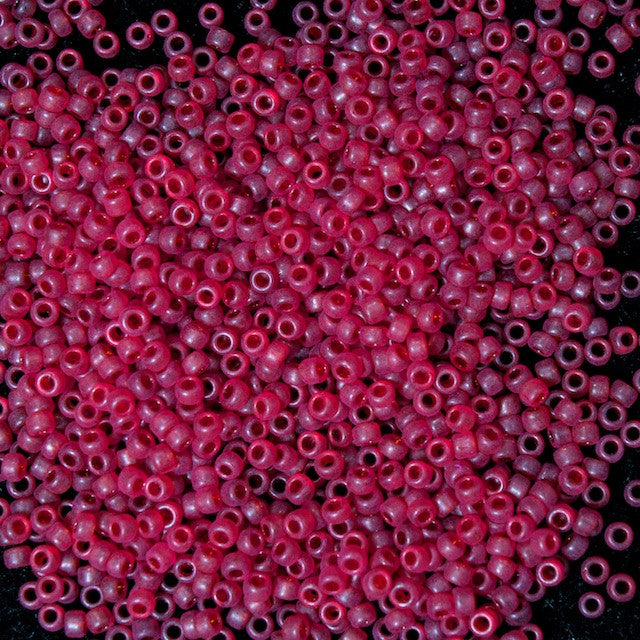 1.5mm 15/0 matte transparent ruby seed bead.