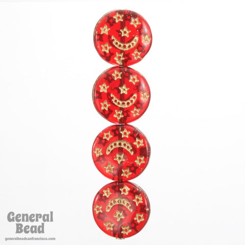 12mm Ruby/Gold Star and Moon Disk (10 Pcs) #3701