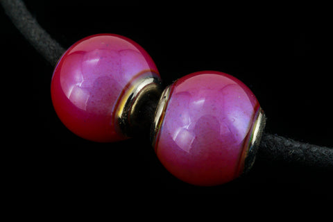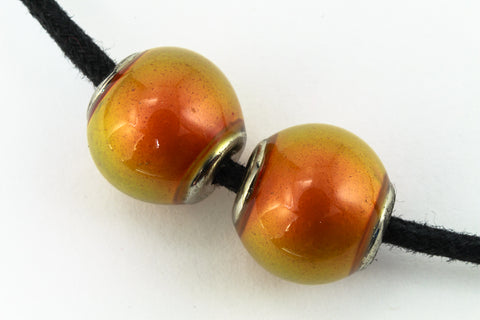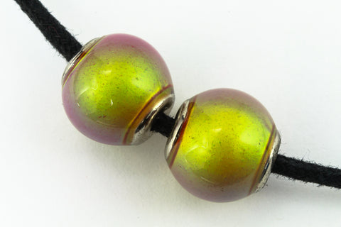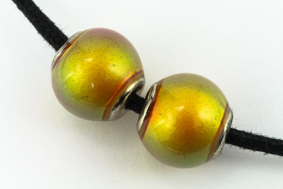 12mm round mood bead with cap. Color shifts from hot pink to green to yellow to orange to red.