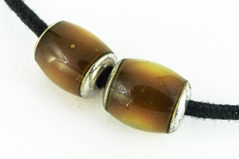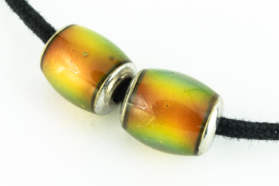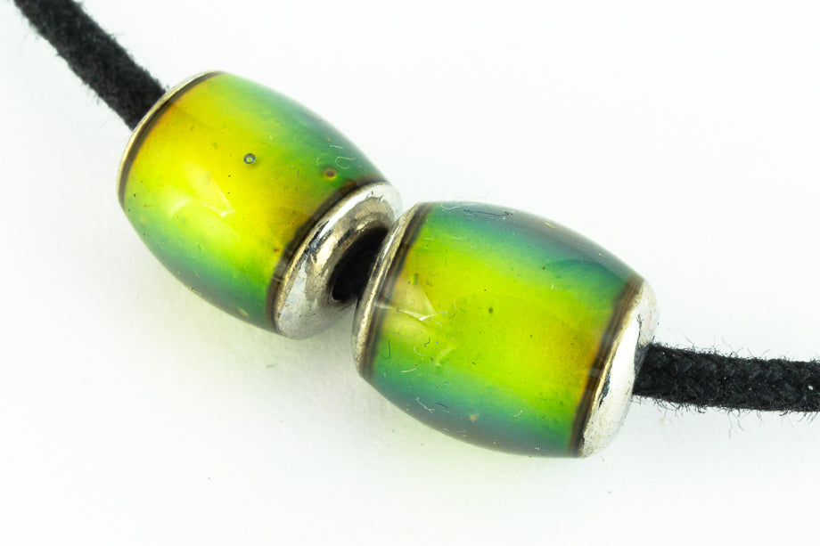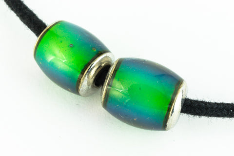 12mm x 8mm barrel mood bead with cap. Color shifts from blue to green to brown to black.
