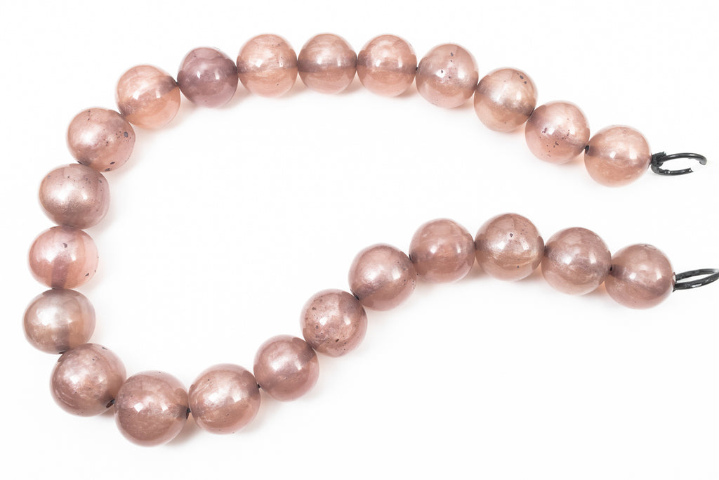 Soft rose pink with pearlescent sheen, slightly irregular shape.