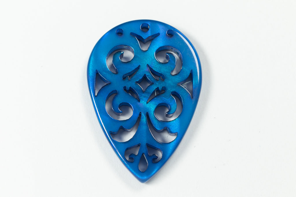 36mm x 50mm flat teardrop with laser cut filigree design.