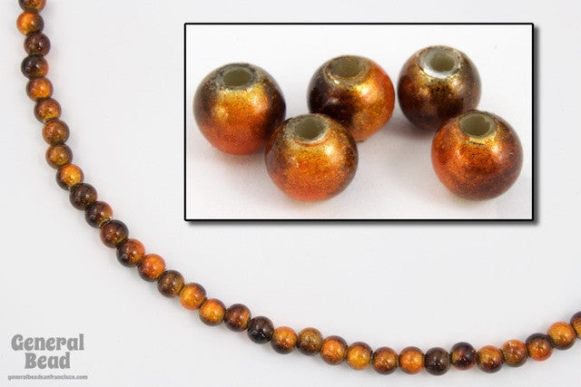 4mm round acrylic bead with two tone orange and black reflective resin coating.