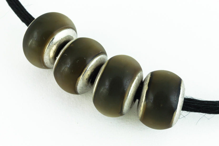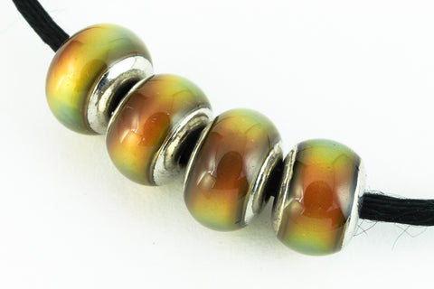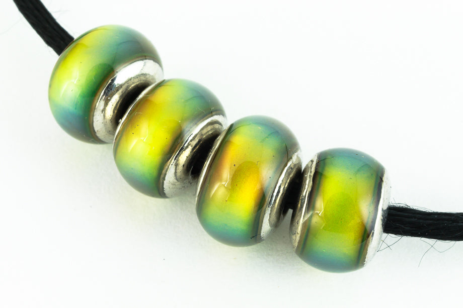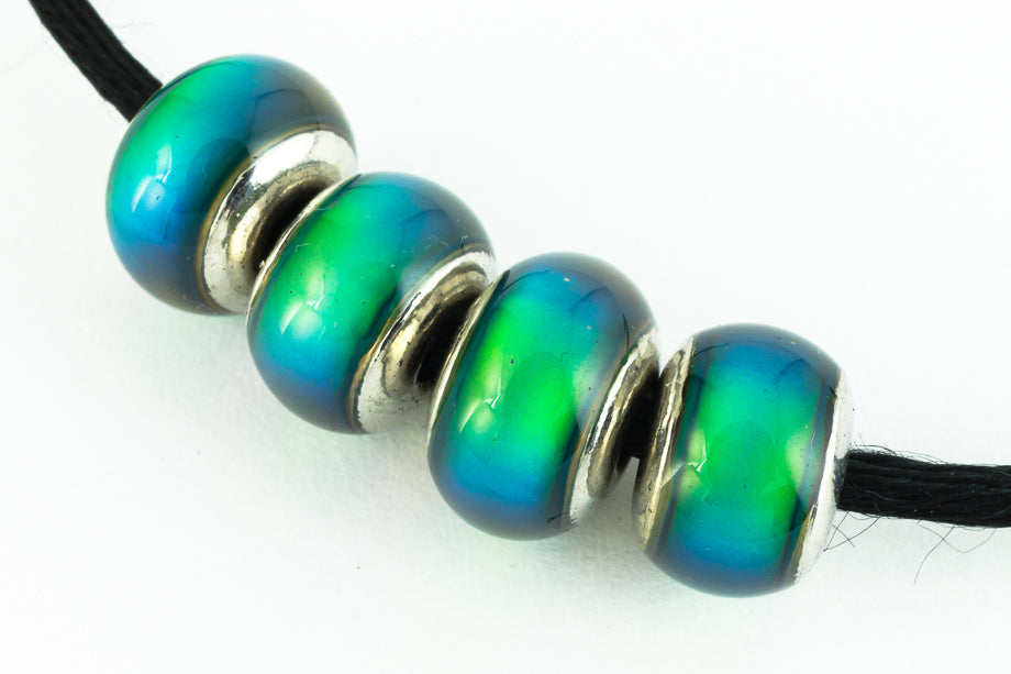 7mm x 8mm crow mood bead with cap. Color shifts from blue to green to brown to black.