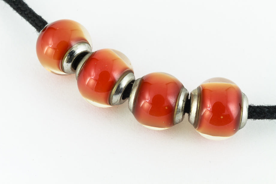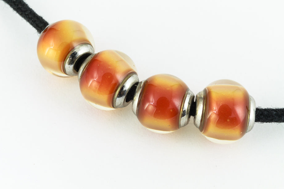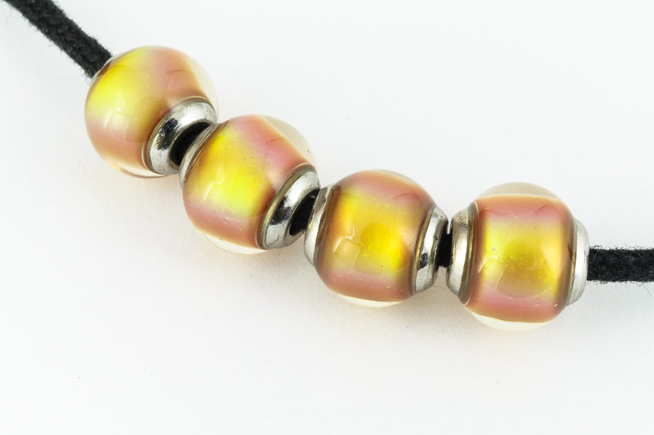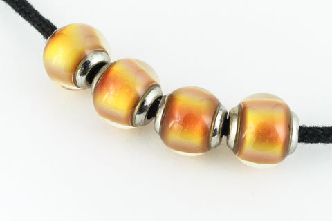 9mm round mood bead with cap. Color shifts from hot pink to green to yellow to orange to red.