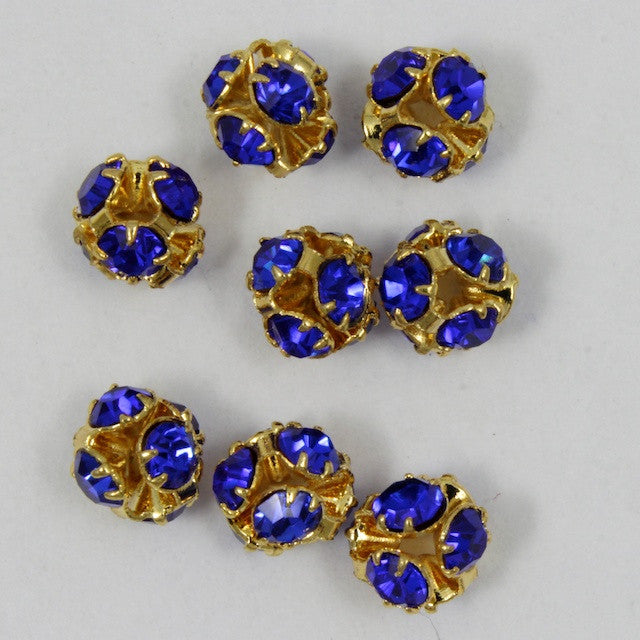 4.5mm rhinestone ball with gold tone casings and Sapphire rhinestones.
