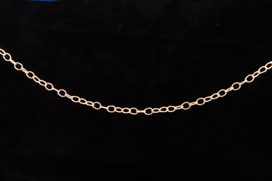 3mm x 2mm oval cable chain with .4mm diameter wire. Current manufacture from the USA.