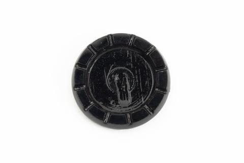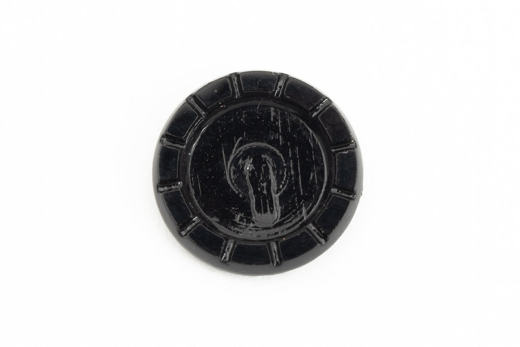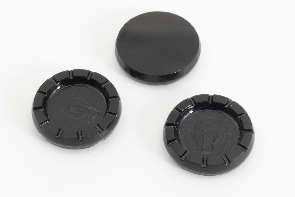 Vintage glass cabochon.10.11mm opaque black round flat back. Measures 2.5mm thick.Central setting fits 30ss rhinestone.Made in Germany or the Czech Republic in the 1960's or earlier.Sold individually.
