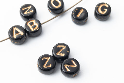 6mm Black Glass "Z" Alphabet Bead #ADB726