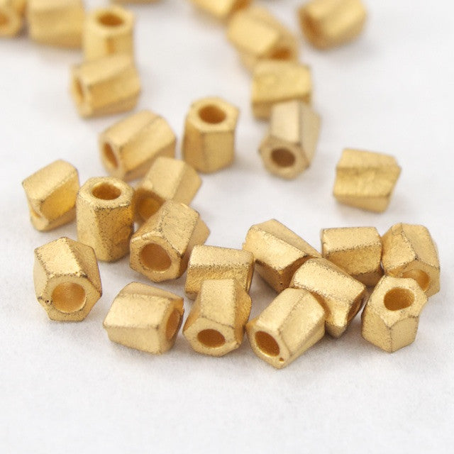 2.2mm size 10/0 matte gold 22 karat coated twist hex seed bead.