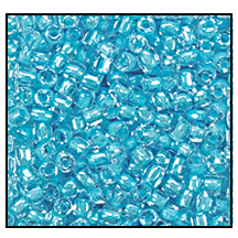 Size 12/0 (1.7mm) 3-cut glass seed bead in aqua lined crystal.