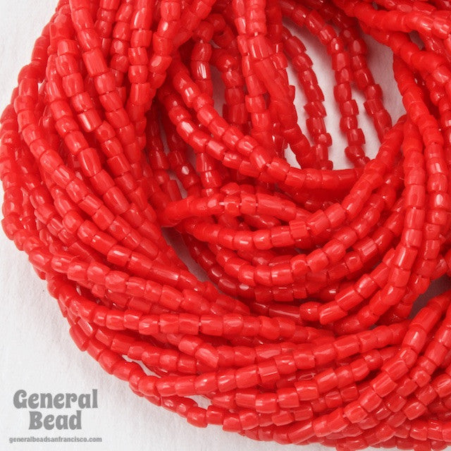 Size 12/0 (1.7mm) 3-cut glass seed bead in opaque Chinese red.