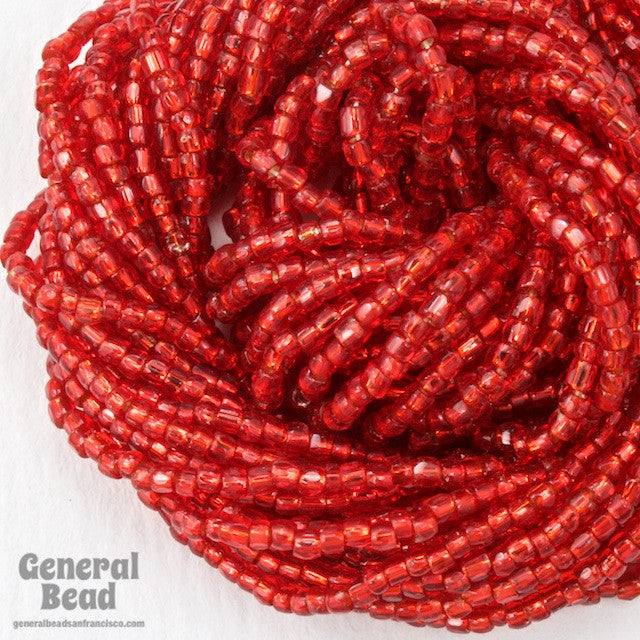 Size 12/0 (1.7mm) 3-cut glass seed bead in silver lined red.