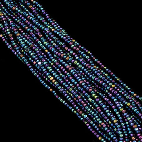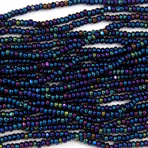 Size 13/0 Charlotte cut metallic blue iris glass seed beads.