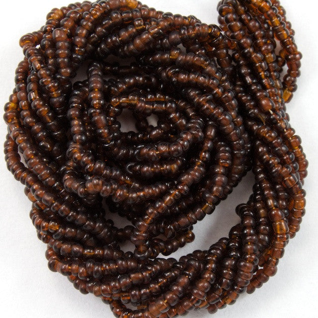 Size 16/0 transparent dark brown antique Venetian glass micro seed beads.
