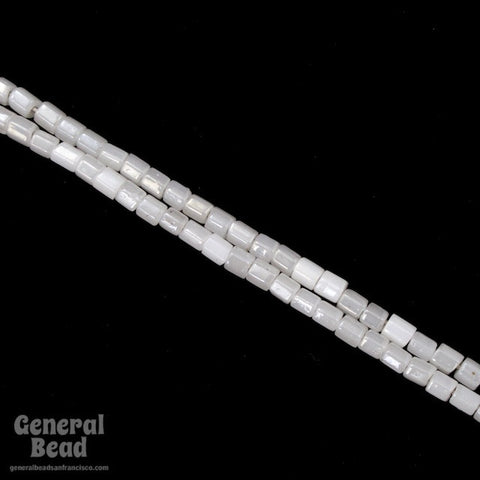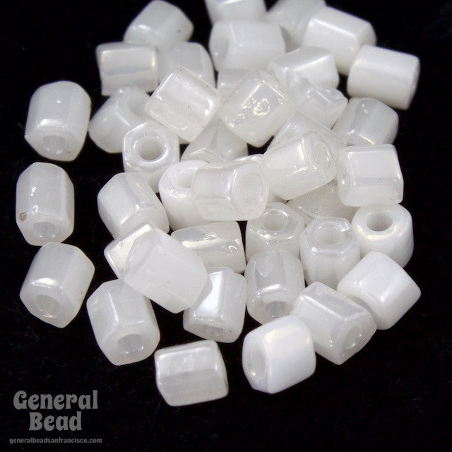 Size 8/0 opaque luster off white two-cut hex seed bead.