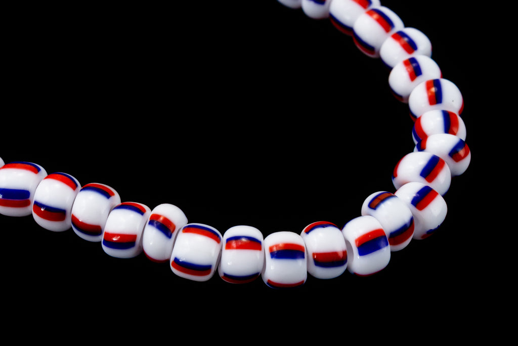 8/0 Stripe Red and Blue on White Czech Seed Bead (1/2 Kilo) #BL507