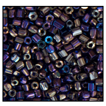 Size 9/0 (2.6mm) 3-cut glass seed bead in transparent cobalt iris.