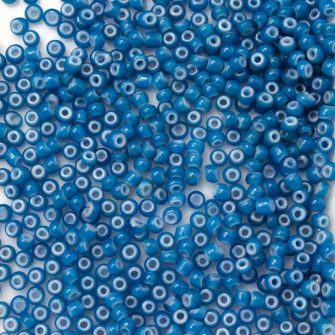 12/0 White Heart Sky Blue Vintage Seed Bead (~3 Gm) #XRB168