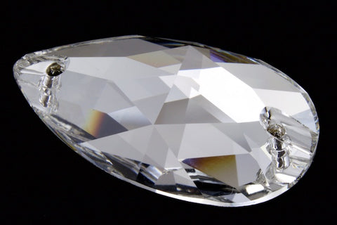 7mm x 12mm crystal faceted teardrop flat back sew-on with two holes and silver foil.