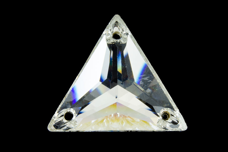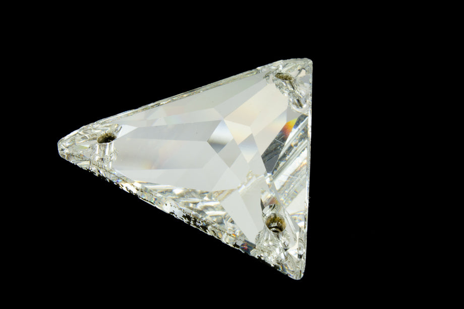 22mm faceted triangle sew-on with hole at each corner.