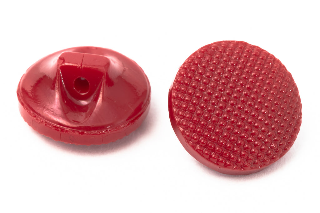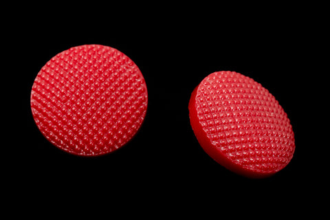 13mm opaque maroon round lightly domes button with beaded texture and molded shank on back.