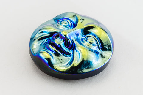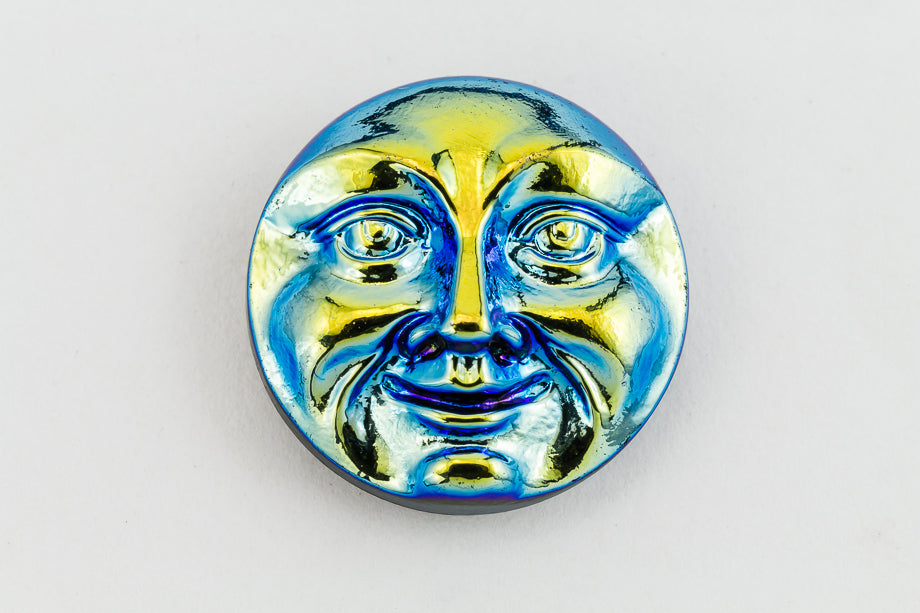 18mm metallic black iris domed glass button with detailed Man in the Moon face.