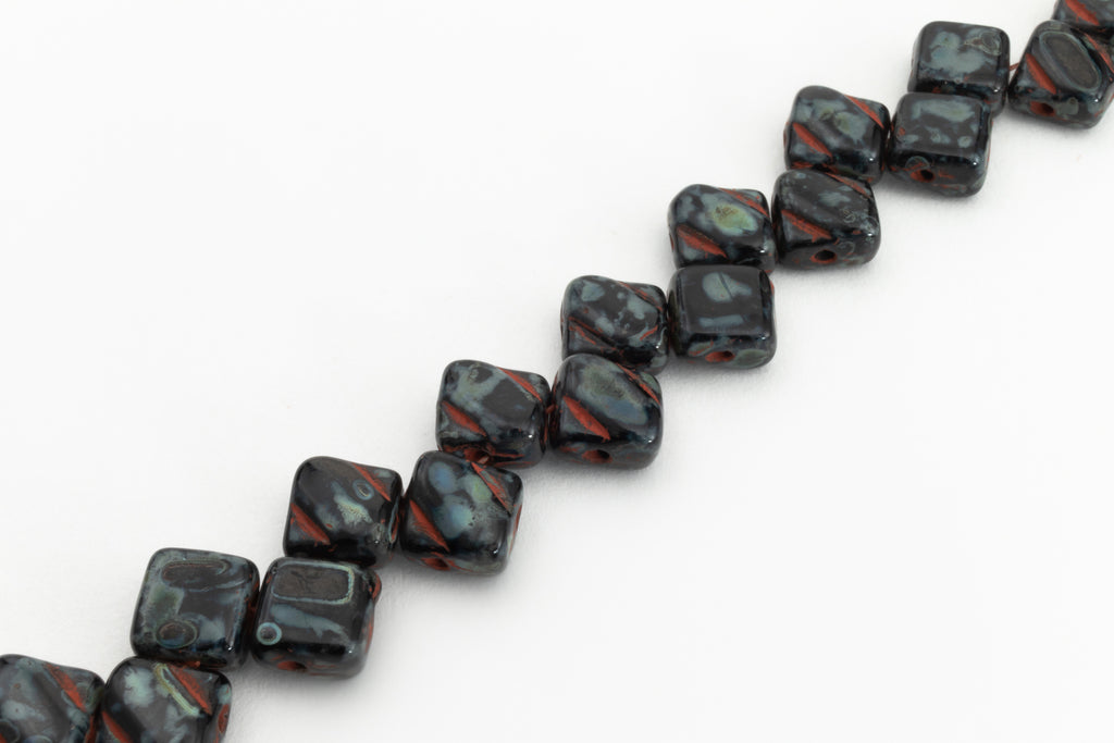 Silky beads 6mm square shape beads with 2 diagonally drilled parallel holes.
